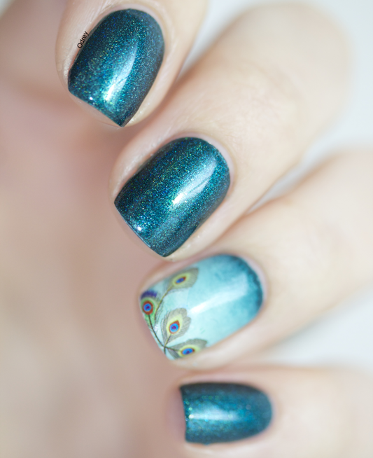 Cela fait plusieurs mois que j’ai envie de réaliser un nail art plume de paon. Seul problème : je suis incapable de faire quelque chose de correcte avec des pinceaux ! D’une part parce que je n’ai pas le matériel qu’il faut, c’est-à-dire de la peinture, et d’autre part, et surtout la conclusion de tout ça, c’est que je ne suis pas douée ! J’ai bien tenté le truc 3 ou 4 fois et ça finissait toujours par un échec ! Et surtout ça ne ressemblait jamais à une plume de Paon, bien belle, bien jolie ! Non, moi c’était plutôt la plume de paon retrouvée au fin fond d’un tiroir et qui avait déjà bien vécu … Le truc avec 3 machins dessus et qui ressemblait à rien en somme !