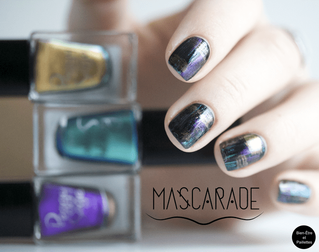 Imaginez les couleurs d’une plume de Paon en version métallique ? Vous imaginez tous les reflets que ça peut donner ? Et là, à cet instant très précis, vous vous dites que ça serait dingue et qu’il faut absolument des vernis comme ça ?! Et si je vous disais que c’est exactement la promesse de cette collection automnale ? Mascarade, c’est une collection de 6 minis vernis duchromes pour un effet maxi !
