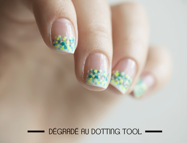 Donc, si vous avez envie d’une manucure colorée et rapide, celle-ci fera parfaitement l’affaire. Et pas de panique, si vous n’avez pas de dotting tool, une tête d’épingle suffit largement 🙂
