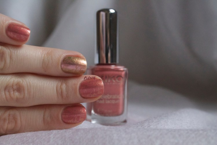 Point manucure : dans mes derniers petits achats s’est glissé dans mon panier un vieux rose avec une petite touche de cuivre de Kiko, le Celebration 418 Metallic Cooper. Il a des faux airs de Virgin Orchid mais en plus foncés. Ne voulant pas le porter tout nu, j’ai décidé de lui donner un petit […]